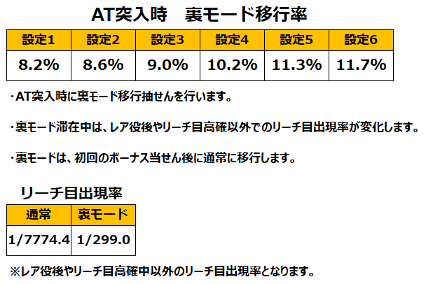 今作でもAT突入時に裏モードの移行抽せんを行っています!